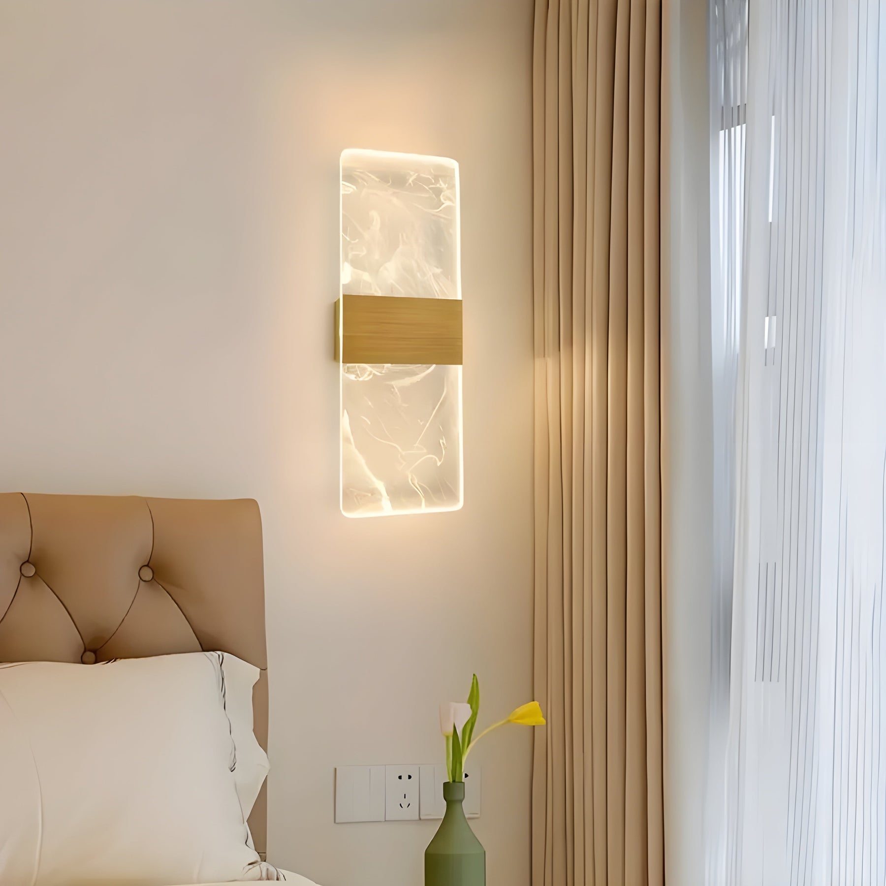 The CalmAura wall light combines minimalist design with warm LED illumination. Its unique mist-textured acrylic diffuser creates a soft, calming glow that enhances bedrooms, dining rooms, or offices. Made from durable iron, aluminium, and acrylic, it offers long-lasting quality and a refined golden finish.